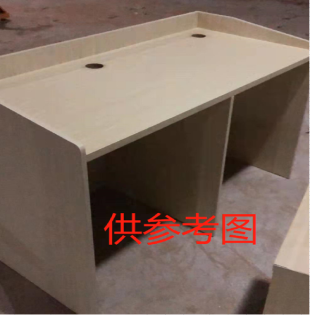 1.尺寸规格: 1)台面(含桌子边)长*宽(1600mm*600mm); 2)台面距离地面高度:710mm; 3)桌沿(高出台面上部分):前沿高度150mm;左右边沿由前往后有坡度: 4)隐藏式线槽:在桌子内前板内侧做1个水平线槽,水平线槽内部深度150mm高度200mm; 5)台面开2个出线孔:开孔直径60mm;含加厚锌合金办公桌线孔盖; 2.材质:防火阻燃环保,表面三聚氰胺,基层颗粒板材,板材厚度不小于25mm。颜 色:浅胡桃色。 |