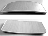 ★6.课椅靠背要求是弧形的主体采用桉木基材的胶合板,双面饰面,面板的曲率半径750mm(±10mm),面板厚≥10mm、宽≥385mm,高≥160mm。靠背面板四周采用PE注塑成型,注塑边缘与座面圆润连接,无突兀感,增加舒适程度。 课椅靠背板参考图样: