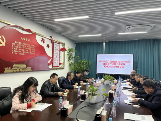 1月14日上午,广西建设职业技术学院副校长谢东、广西建设职业技术学院建科资产经营公司董事长王路生一行7人,到资产经营公司考察交流,参观太阳集团tyc138科技园。