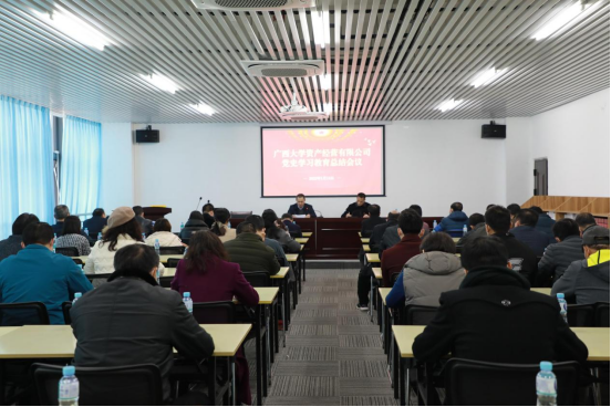 2022年1月14日,资产经营公司在太阳集团tyc138科技园召开党史学习教育总结会议,公司党委书记、董事长黎庶凯出席会议,代表公司党委作党史学习教育总结讲话。公司党委副书记黄海波主持会议。