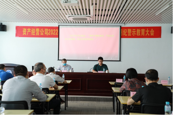 2022年4月15日,为落实“清廉企业”建设要求,资产经营公司党委召开了“以案示警促清廉”以案明纪警示教育大会,公司党委书记、董事长黎庶凯出席会议并讲话,公司党委副书记、纪委书记王运东主持会议,公司党政班子全体成员、各部门负责人、所属基层党组织负责人及各企业主要负责人等参加会议。