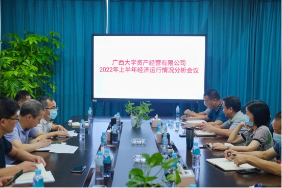 2022年7月28日,资产经营公司在科技园202会议室召开2022年上半年经济运行情况分析会议。公司党委书记、董事长黎庶凯出席会议并讲话,公司党委副书记、副董事长、总经理潘永主持会议。