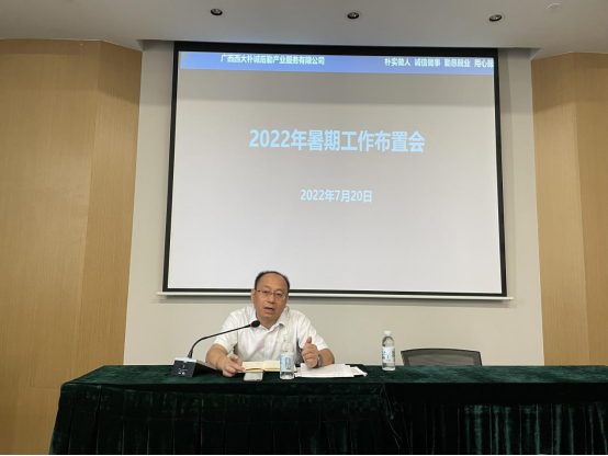 2022年7月20日上午,朴诚后勤产业服务有限公司在荟萃楼酒店明德厅召开2022年暑期工作布置会,会议由公司总经理孔宇主持,各部门正、副职约80人参加了会议。
