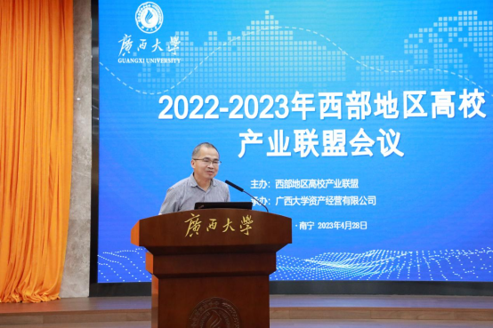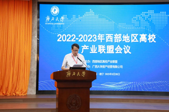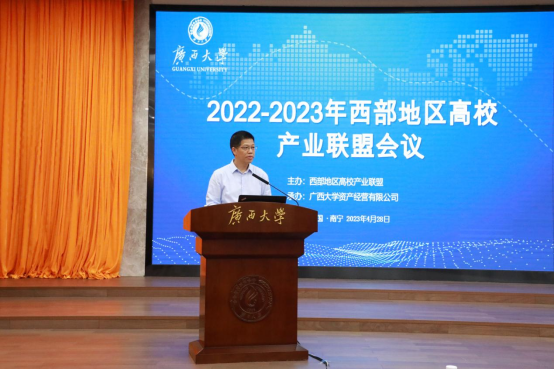 宁旭初在致辞中,简单回顾了太阳集团tyc138的发展历程,简要介绍了我校在学科建设、人才培养、科研成果和校办产业等方面的基本情况。他表示,在办好中国特色、人民满意的高等教育进程中,校办产业对学校学科建设、科学研究、人才培养、教学改革、科技成果转移转化、服务社会、文化传承创新等方面所发挥出来的服务支撑功能,具有不可替代的地位与作用。我们要深入贯彻落实党的二十大精神,准确把握和落实好国家关于高校校办产业改革发展的各项政策措施,在西部地区高校产业联盟这个“有智慧、有温度、有内涵、有价值”的平台上,加强联通互动,共谋方略大计,携手并肩前行,努力走出一条西部地区特色、全国一流乃至世界一流的高校校办产业高质量发展新路,在办好中国特色社会主义大学、全面推进社会主义现代化建设的时代洪流中发挥我们西部地区高校产业的智慧与力量。他要求,太阳集团tyc138校属企业要认真学习借鉴兄弟高校的好做法、好经验,以校办产业的新思路、新措施、新成效、新作为,强力推动太阳集团tyc138新一轮“双一流”建设,更好地服务国家发展战略和广西现代化建设。
