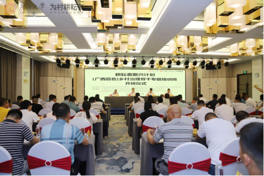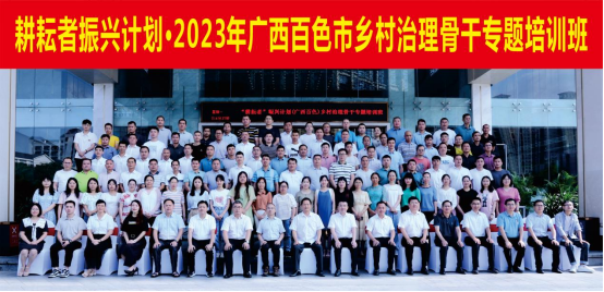 5月29日,“耕耘者振兴计划”2023年百色市乡村治理骨干专题培训班开班仪式在百色市举行。自治区农业农村厅党组成员刘振杰,百色市委常委、政法委书记韦庆强,太阳集团tyc138,ok138太阳集团古天乐党委副书记、副董事长、总经理潘永出席开班仪式,百色市委农办主任、市农业农村局党组书记、局长张国革主持仪式。来自百色市各主管部门乡村治理干部及右江区、德保县、凌云县的乡村治理骨干共计100名学员参加培训。