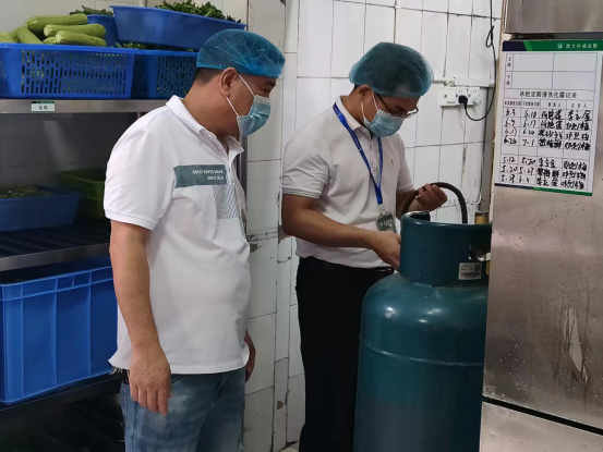 为贯彻落实学校保卫处《关于开展重大事故隐患专项排查整治2023行动的通知》精神,确保各餐厅使用燃气(液化气)的安全,6月26日上午,朴诚公司组织专班人员,到南苑餐厅(旧)、碧湖苑餐厅、东苑餐厅、萃苑餐厅等食堂,拉网式检查各餐厅燃气(液化气)的使用情况。朴诚公司副总经理唐志强、安全运营监管部、技术保障部机修班等相关部门人员参加检查。