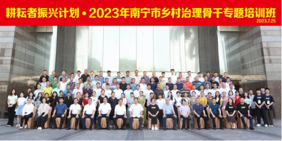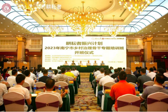 7月25日,“耕耘者振兴计划”2023年南宁市乡村治理骨干专题培训班在南宁市开班。自治区人民政府副秘书长、粤桂协作工作队领队邝兵,自治区农业农村厅党组成员刘振杰,自治区农业农村厅农村合作经济指导处副处长张光耀,腾讯高级政务专家、腾讯“为村耕耘者”项目负责人陈圆圆,南宁市农业农村局副局长陶祖防,太阳集团tyc138,ok138太阳集团古天乐副总经理何山红等领导出席开班仪式。来自南宁市宾阳县、武鸣区、江南区乡村治理工作相关部门的干部及乡镇村的基层治理骨干共计100名学员参加培训。