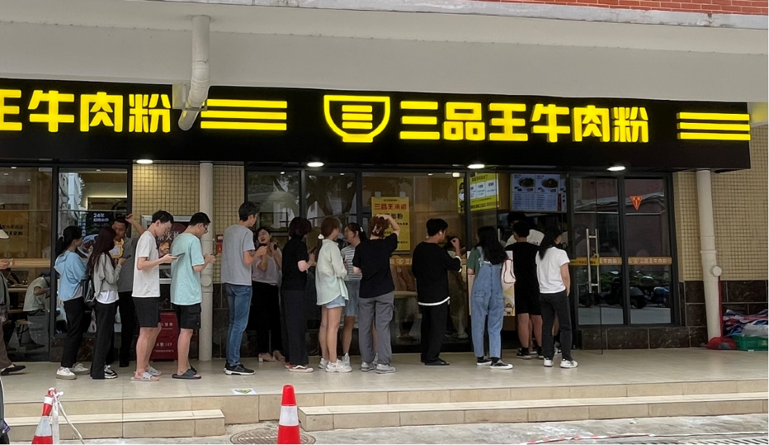 8月29日,朴诚公司引进的餐饮品牌“三品王”在南苑第二餐厅一楼正式营业。上午11:00,“三品王”店门外排起了长队,店里坐满了就餐的师生。就餐的学生表示,想不到在宿舍楼下就能吃到“三品王”,很惊喜,很开心,希望学校引进更多的餐饮品牌,丰富大家的饮食。