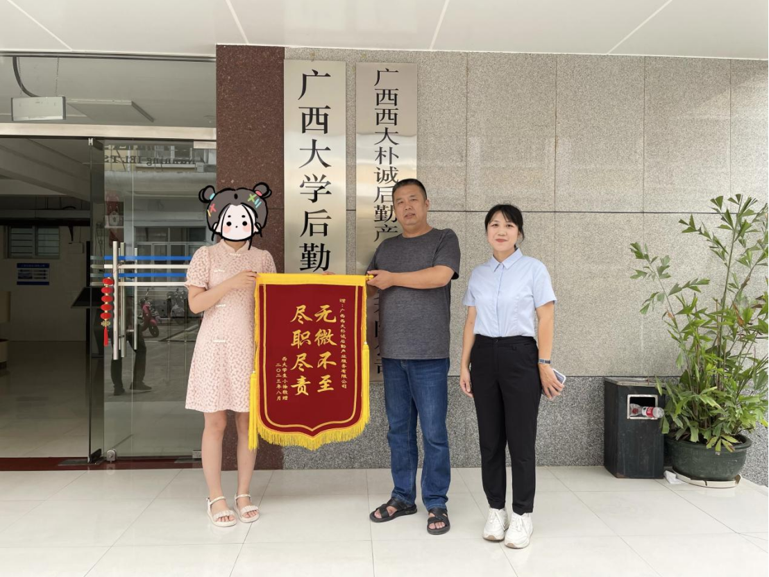 8月30日下午,动物科学技术学院21级徐同学特意前往朴诚公司送上“无微不至 尽职尽责”锦旗,表达对公司的感激之情。