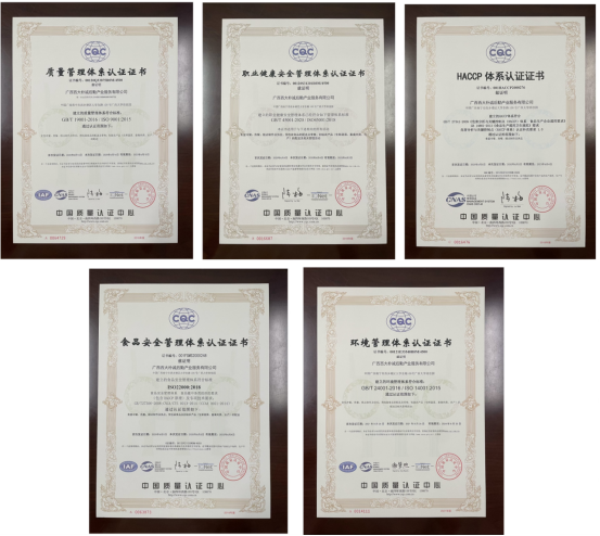9月12日,朴诚公司顺利取得由中国质量认证中心颁发的五大管理体系认证证书:《质量管理体系认证证书》《环境管理体系认证证书》《职业健康管理体系认证证书》《食品安全管理体系认证证书》《危害分析与关键控制点体系认证证书》。