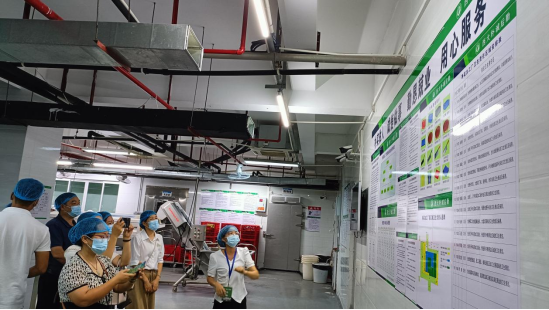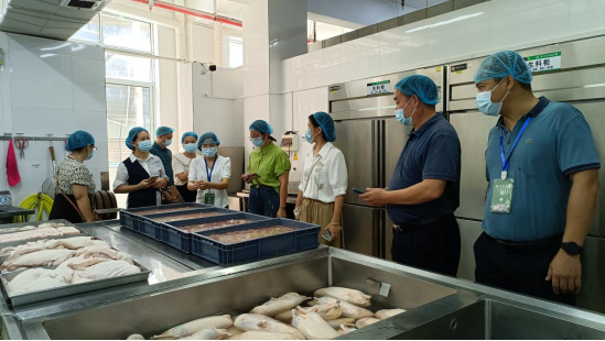 玉林师院调研组一行还实地考察了食品检测室、净菜加工中心、秀苑餐厅、南苑餐厅等地。