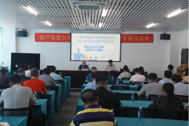 为加强公司及所属各企业(单位)合同管理工作,防控法律风险,提高公司及所属企业工作人员的风险防控意识、法律素质和履职能力,资产经营公司于2023年9月26日在科技园举办2023年法律专题培训会,邀请广西伟宁律师事务所主任梁庆秋律师授课,培训会由公司党委副书记李明同志主持。资产经营公司中层以上人员,公司所属全资、控股企业及管辖单位的主要负责人、法务联络员共40余人参加培训。