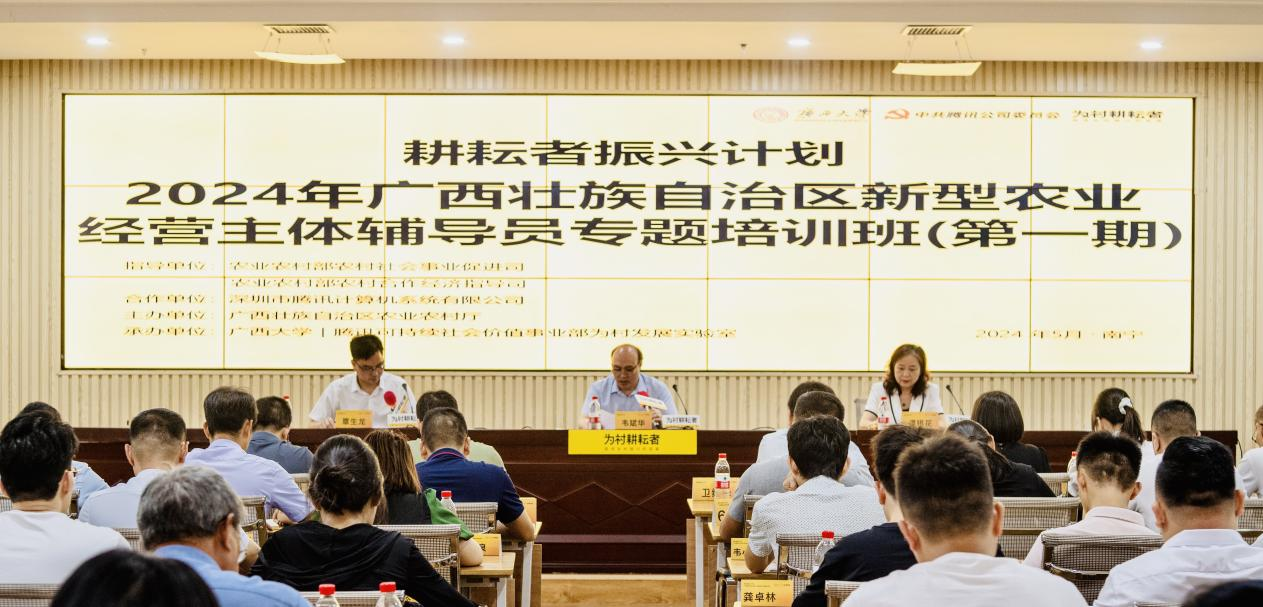“耕耘者振兴计划”2024年广西新型农业经营主体辅导员专题培训班于5月13-17日在太阳集团tyc138开班,这是“耕耘者振兴计划”培训班首次在太阳集团tyc138校园内举办。自治区农业农村厅农村合作经济指导处处长韦斌华,太阳集团tyc138,ok138太阳集团古天乐党委书记、董事长谭银花出席开班仪式。来自全区14个市(县、区)的新型农业经营主体辅导员共计100名学员参加本次培训。