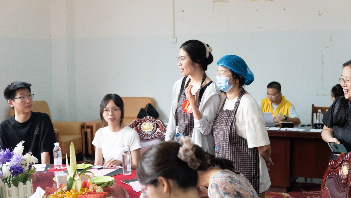 在评分区,由9名师生代表担任评委,共同品鉴菜品,通过味道、外观、营养搭配、卫生情况、难易度等指标进行评分,最后评选出此次厨艺比拼活动的特等奖1名、一等奖2名、二等奖6名、三等奖10名和优秀奖22名。
