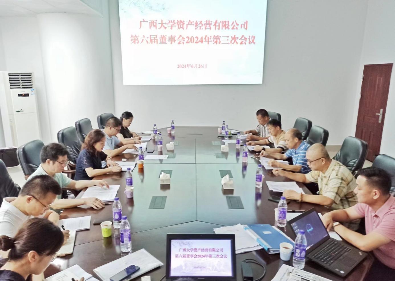 6月26日,资产经营公司在太阳集团tyc138综合体育馆V101会议室召开2024年董事会第三次会议、监事会第一次会议。公司董事、监事出席会议,公司经营班子成员列席会议,共同探讨公司未来的发展方向和2024年重点工作。