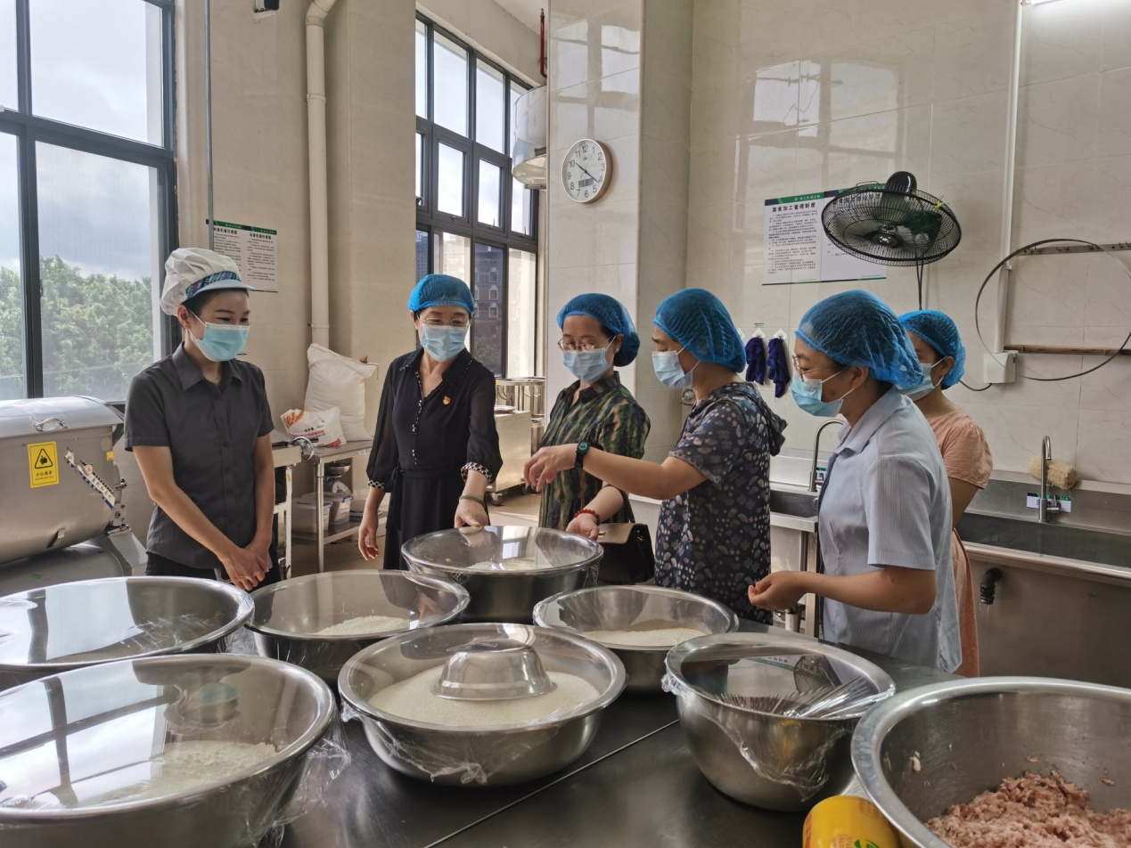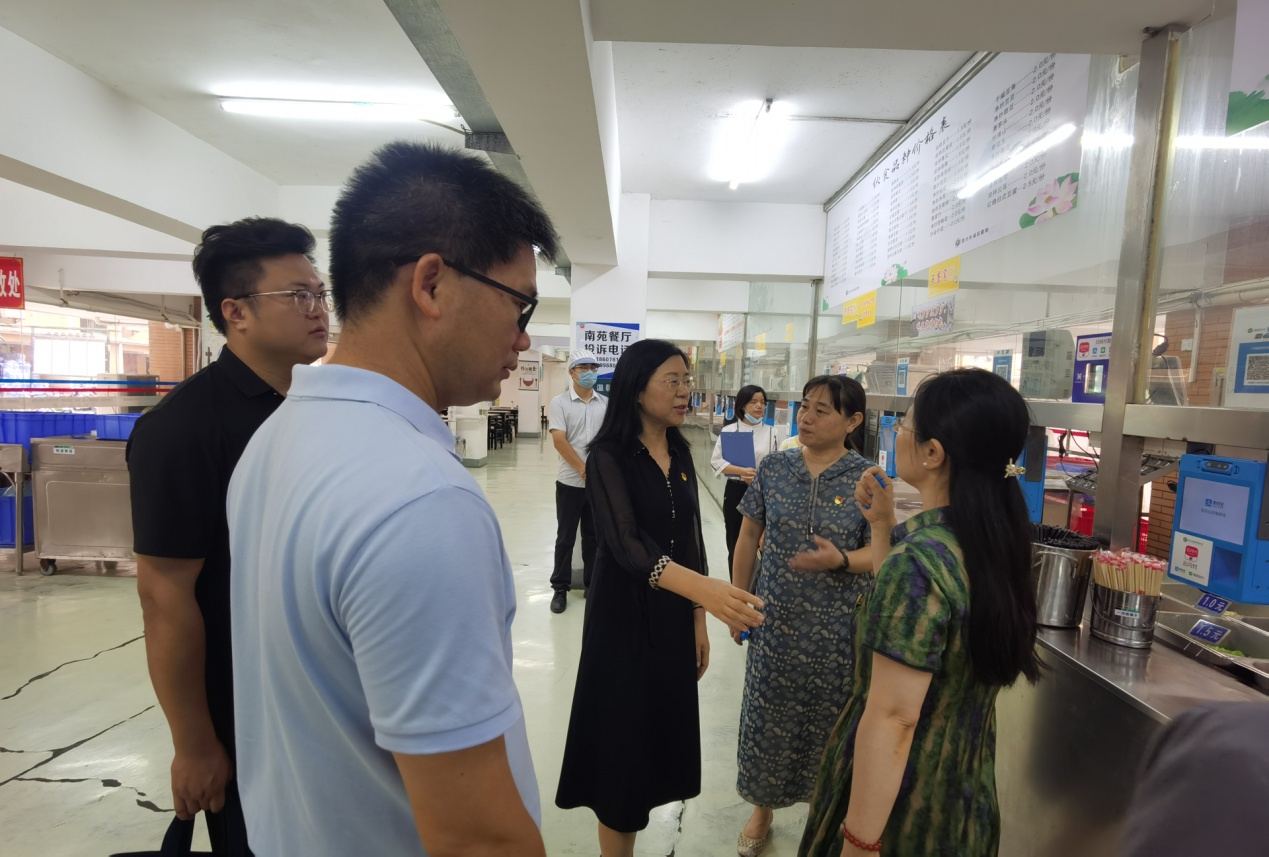 金书记现场检查了南苑餐厅一楼综合小吃、二楼自选、餐厅后厨及西22栋学生宿舍供餐点。检查中,她充分肯定了学校食堂后厨管理方面成效,同时从关注舆情、党建作业本视角,对学校食堂管理工作提出以下要求:一是学校食堂要加强宣传力度,加强与师生的沟通和互动,做出的成效要及时展现;二是学校食堂要与时俱进,不断丰富伙食品类,目前学生生源近一半来自北方省(市、自治区),要从品种、口味上下功夫,适当增加面食、北方特色饮食,以满足来自北方的学生们的需求。