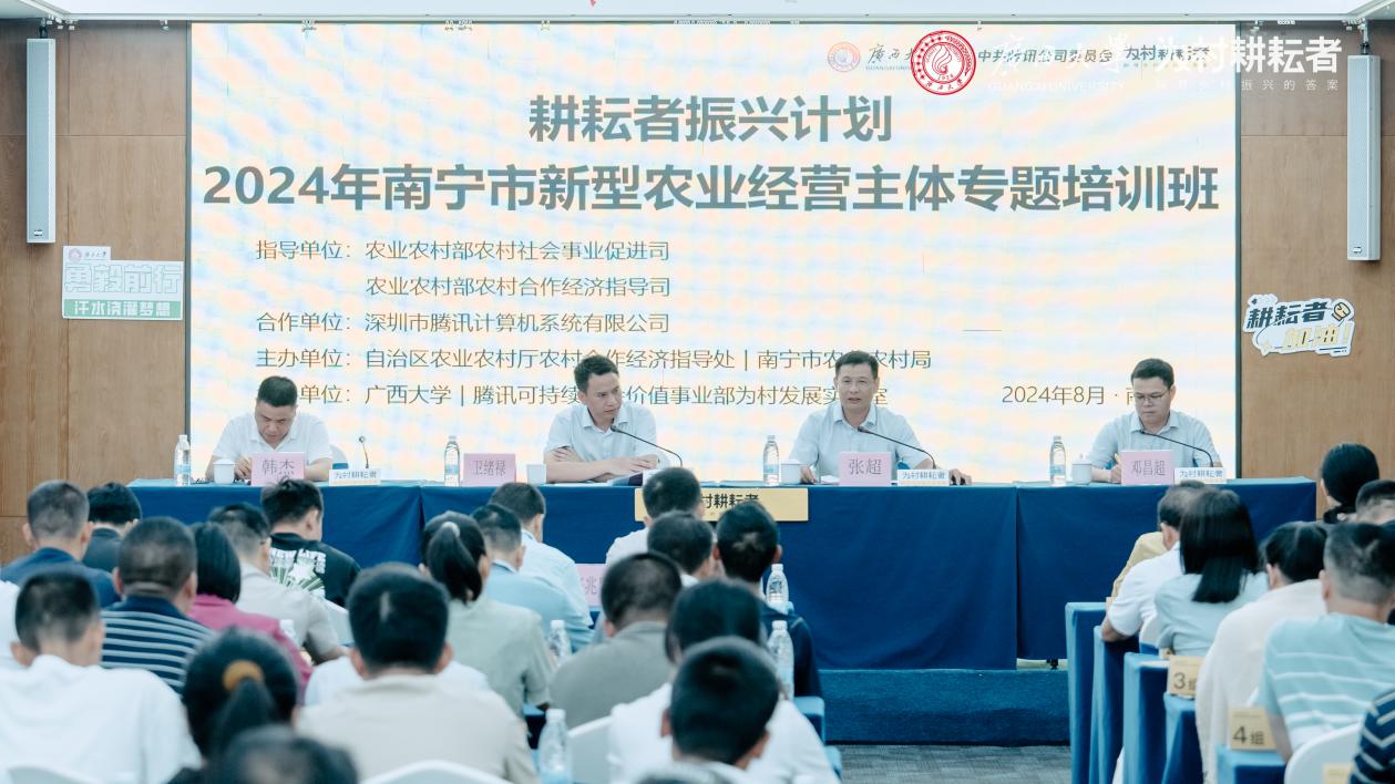8月27日,“耕耘者振兴计划”2024年南宁市新型农业经营主体专题培训班在南宁市江南区顺利开班。自治区农业农村厅农村合作经济指导处二级调研员卫绪禄,南宁市委农办副主任、市农业农村局副局长、党组成员张超,太阳集团tyc138教育科技有限公司副总经理韩杰,太阳集团tyc138教育科技有限公司培训部主任邓昌超出席开班仪式。来自南宁市各县(区、市)的农经干部、辅导员、农民合作社理事长、家庭农场主、种养殖大户学员,共100人参加本次培训。开班仪式由邓昌超主持。
