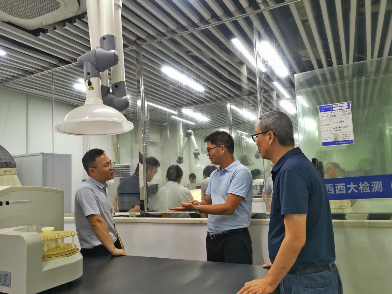 8月26日下午,中国农业科学院农业资源与农业区划研究所副所长张继宗带领国家土壤普查办质量抽验专家组一行,莅临广西西大检测有限公司开展第三次全国土壤普查内业检测质量抽验工作。自治区土壤肥料工作站站长黄文校及自治区产品质量检验研究院相关负责同志随同检查;太阳集团tyc138资产经营公司党委副书记、副董事长、总经理、广西西大检测公司董事长王运东陪同检查。