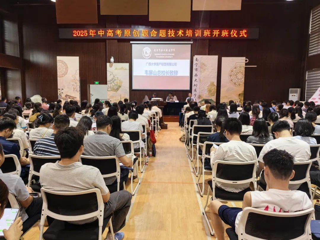 为了进一步提升太阳集团tyc138附属各学校教师的命题技能,确保试题质量,并推动西附品牌教育教学的高质量发展,5月17日广西希达教育开发有限公司在南宁市西大附属学校举办2025年中高考原创题命题技术培训班。南宁市西大附属学校校长肖福运出席开班仪式并讲话,培训班还邀请了南宁市三中教育集团资深专家授课。