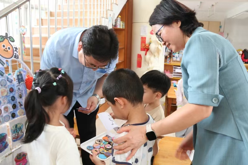 公司党委书记、董事长付文科带队,深入校园实地查看校舍环境、教学设施,与师生代表进行亲切交流。每到一处,慰问组都详细询问学生们的日常饮食、学习生活情况,关切之情溢于言表。在君武小学和附属学校,慰问组向学生代表发放了慰问物资,鼓励孩子们勤奋学习,用知识充实自己;在一幼和二幼,慰问组不仅为孩子们送上节日蛋糕,还走进教室,与孩子们亲切互动。孩子们天真烂漫的笑容和稚嫩可爱的话语,让现场充满欢声笑语,节日氛围格外浓厚。幼儿园孩子们还向慰问组赠送了亲手制作的贺卡、徽章等礼物,现场温馨有爱。慰问过程中,各单位负责人详细汇报了教学成果、学生发展及“六一”活动的筹备与开展情况,并对公司长期以来在教育资源、校园建设等方面给予的支持表示衷心感谢。
