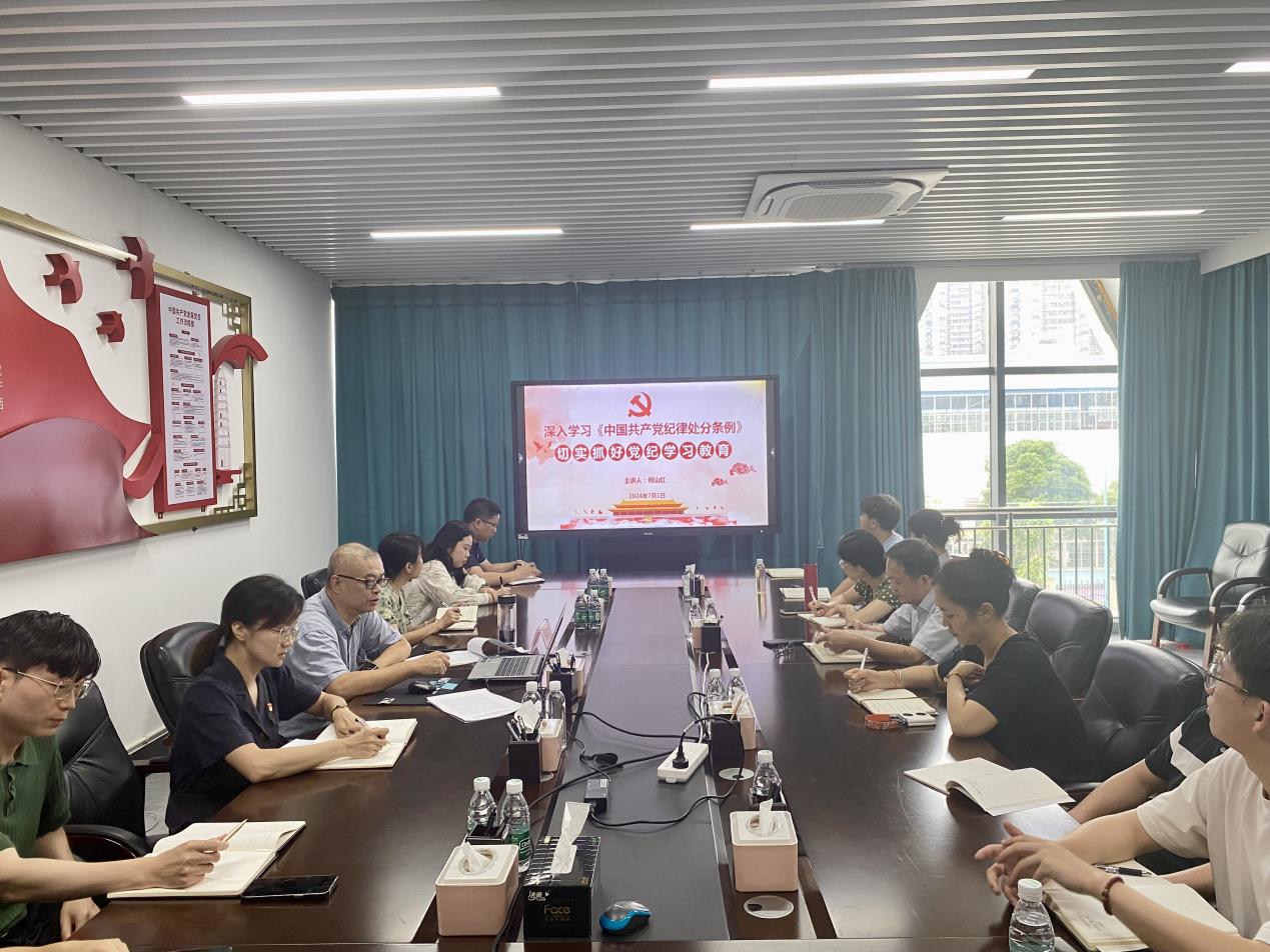 7月1日,资产经营公司党委委员、副总经理何山红在太阳集团tyc138科技园,为行政党支部讲授主题为“深入学习《中国共产党纪律处分条例》,切实抓好党纪学习教育”的纪律党课。