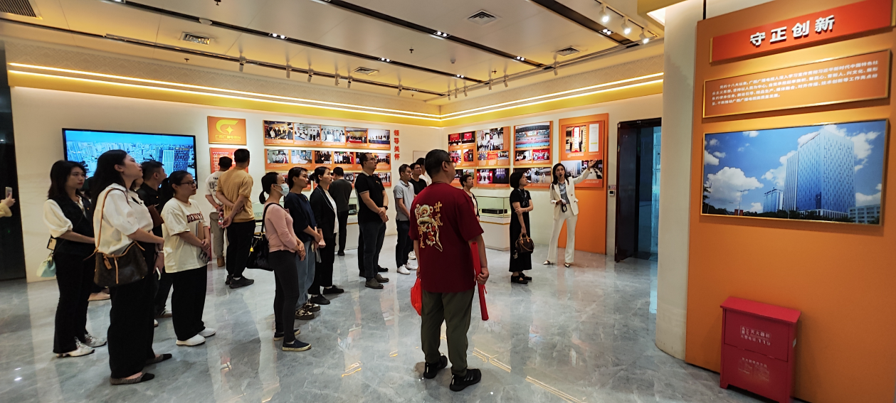 党员同志们首先参观了广西广播电视台的台史展,新闻频道主持人菁华从历史沿革、改革开放进程、领导关怀以及主要荣誉等四个方面,详细介绍了广西广播电视台的发展史。展厅里的每一个老物件、每一张泛黄的照片,都记录着电视台的发展历程,同时也见证了首府南宁以及中国的发展和变迁,其浓厚的历史氛围和饱含深情的讲解,让在场的每一位党员都深受感动和鼓舞。
