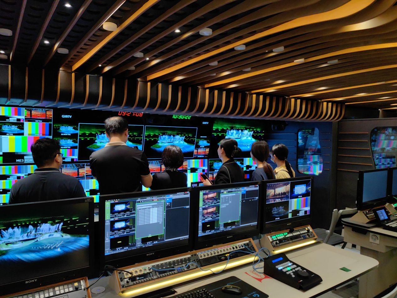 随后,大家参观了1000平米、600平米演播大厅,还登上4K超高清全媒体转播车,了解先进的大型综合性电视节目生产制作的过程。从灯光、舞台到摄像,每一个环节都体现了“新技术”赋能“新媒体”的力量。