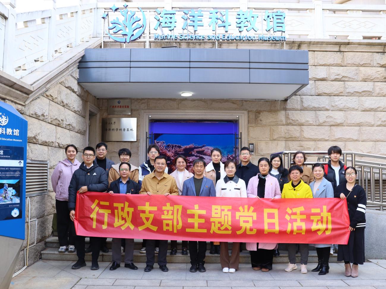 本次主题党日活动还参观了校海洋科教馆,常务副馆长李周佳通过多种珊瑚标本和生动的视频展示,向大家介绍了海洋生态系统的多样性、珊瑚礁生态修复技术原理以及海洋学院师生践行向海图强的奋进历程。大家深刻感受到科学技术研究在保护海洋生态环境中的重要作用。