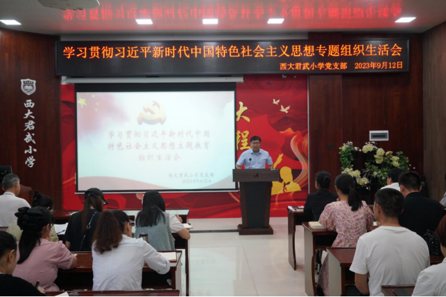 9月12日,西大君武小学党支部召开学习贯彻习近平新时代中国特色社会主义思想主题教育专题组织生活会,党支部书记陈晓艺主持会议。公司党委副书记李明到会指导。